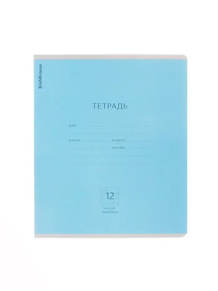 Тетрадь 12 листов в косую линейку, ErichKrause «Классика», обложка мелованная бумага, голубая