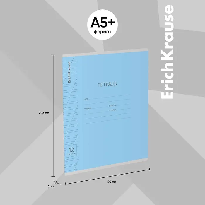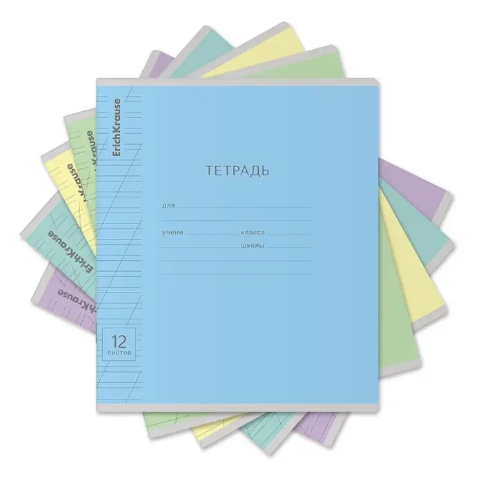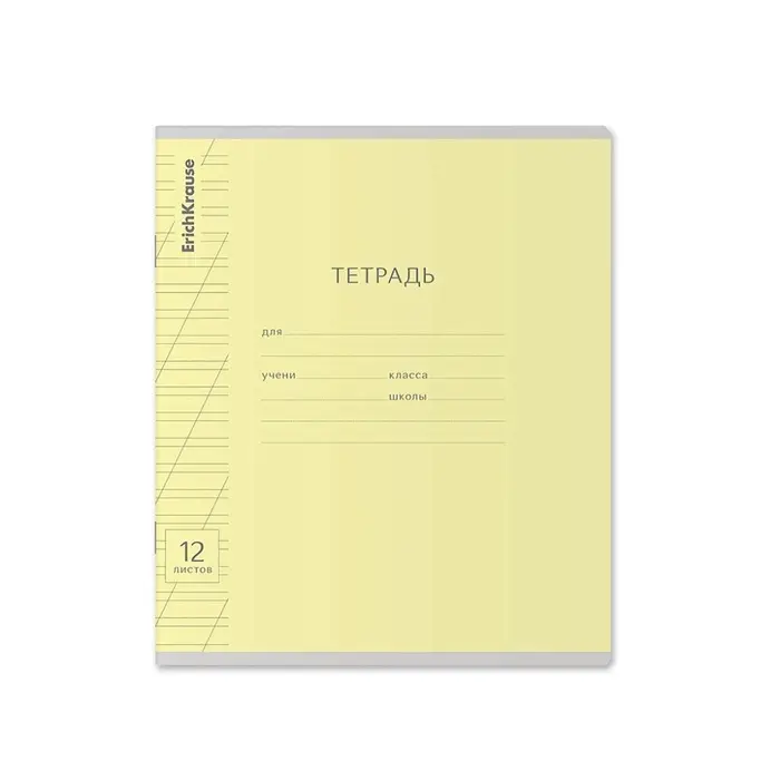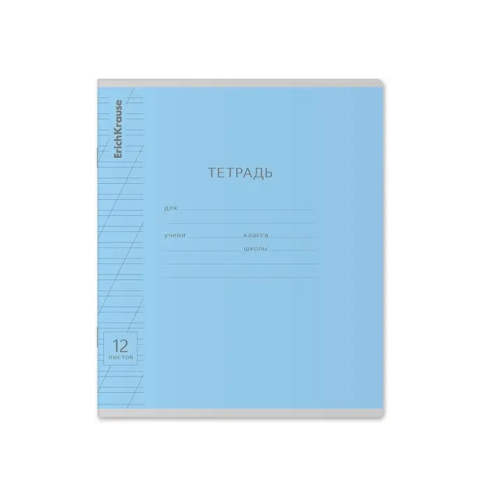 Тетрадь школьная ученическая формата А5+ (170 х 203 мм). Обложка из высококачественного мелованного картона плотностью 180 г/м2. В блоке 12 листов в косую линейку с полями. Бумага офсетная плотностью 60 г/м2. Цвет линовки - синий. Скругленные уголки обложки и блока. Тип скрепления - скоба. Тетради одного цвета упакованы в термоусадочную пленку по 10 штук. Товар поставляется в нескольких вариантах цвета без возможности выбора.