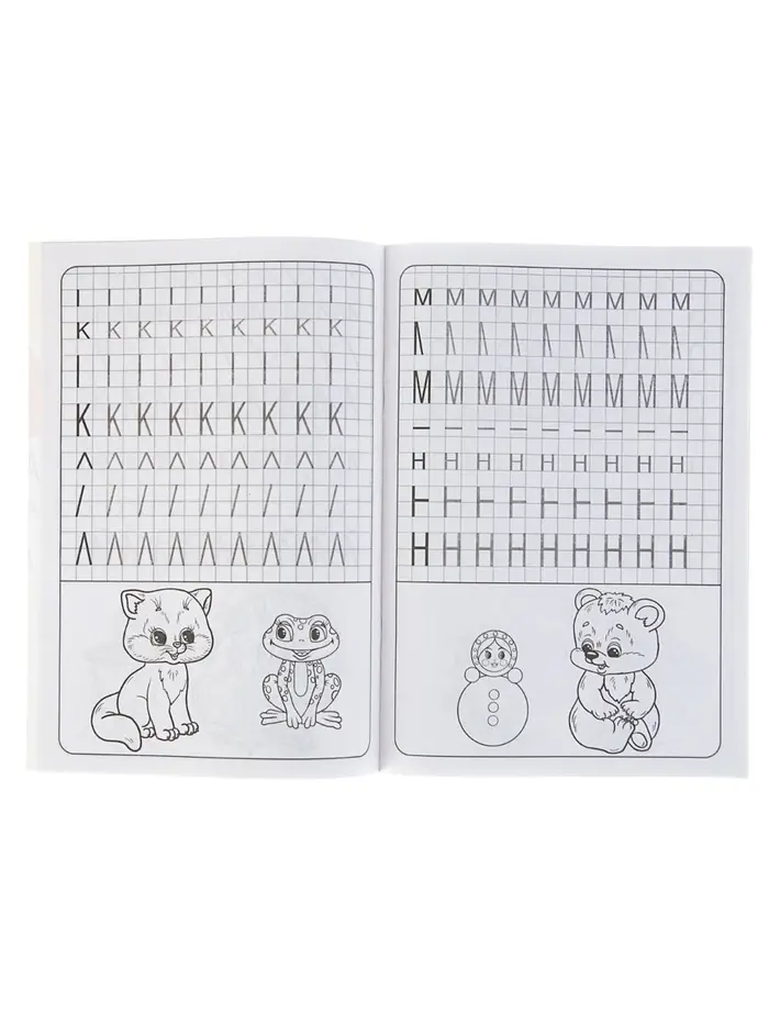 - Страницы с клетчатой линовкой помогают ребёнку ориентироваться при написании букв и слов.