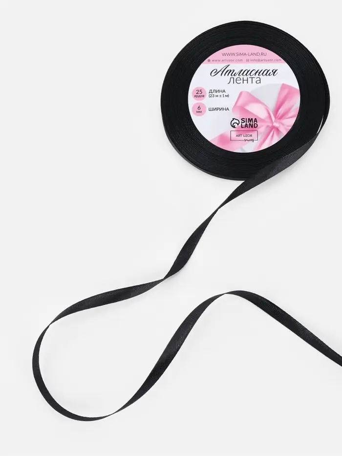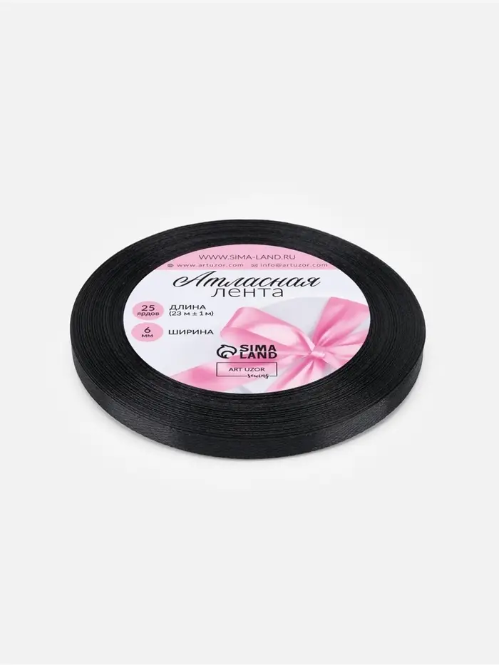 Лента атласная, 6 мм, 23±1 м, чёрная №39