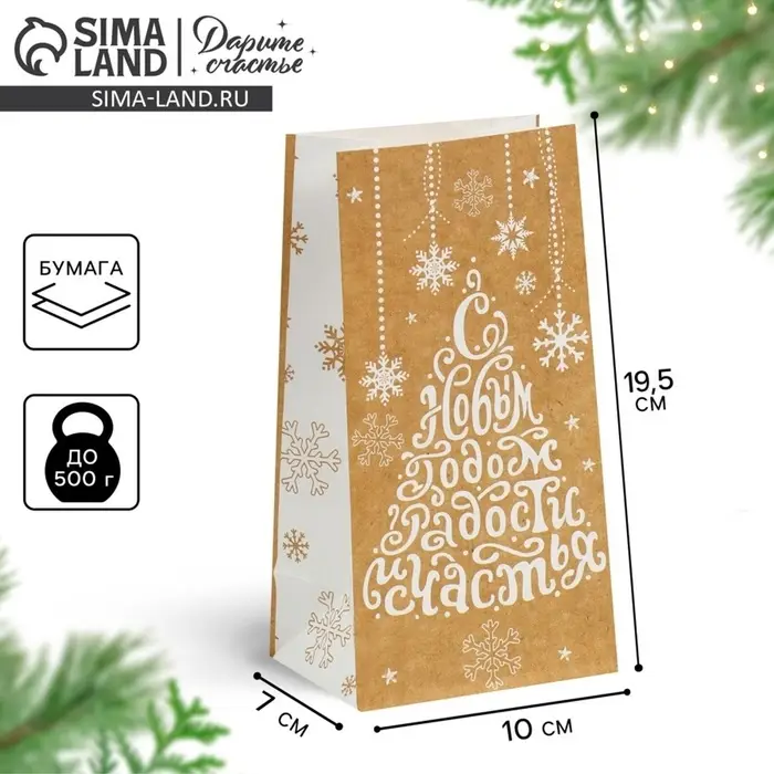 Пакет подарочный без ручек «Счастья в Новом году», 10×19.5×7 см