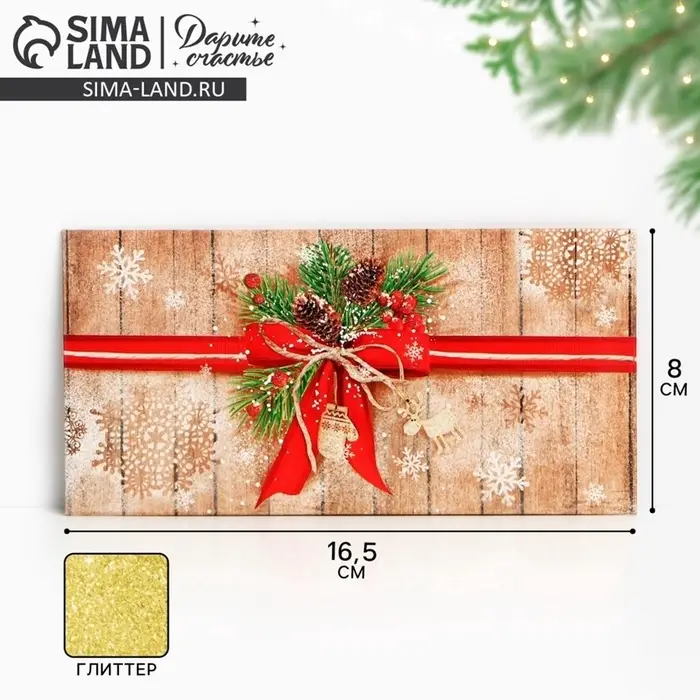 Конверт для денег «Новогодний подарок», глиттер, 16.5×8 см