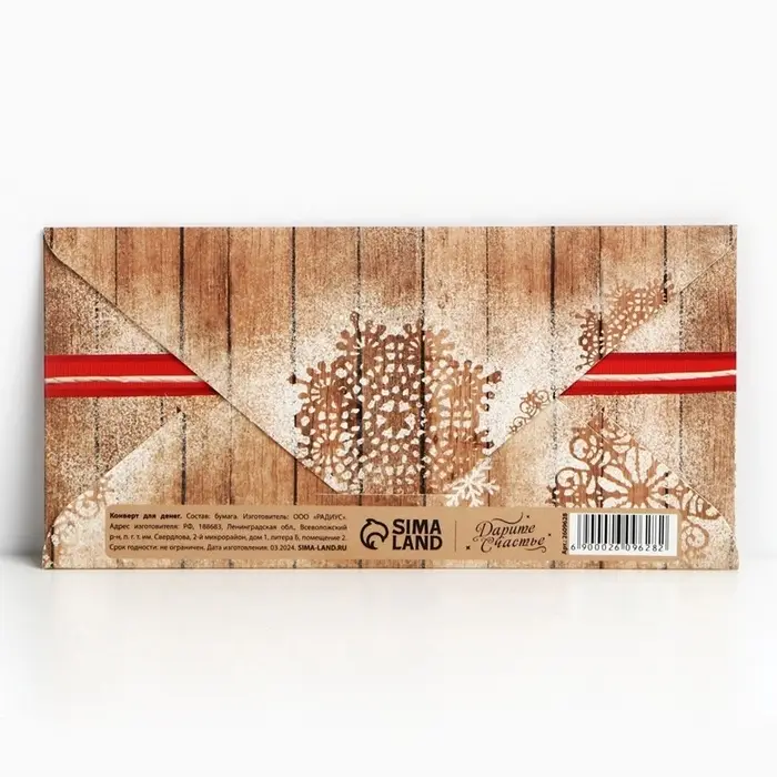 Конверт для денег деревянный резной «С Новым годом!», 16.5×8 см