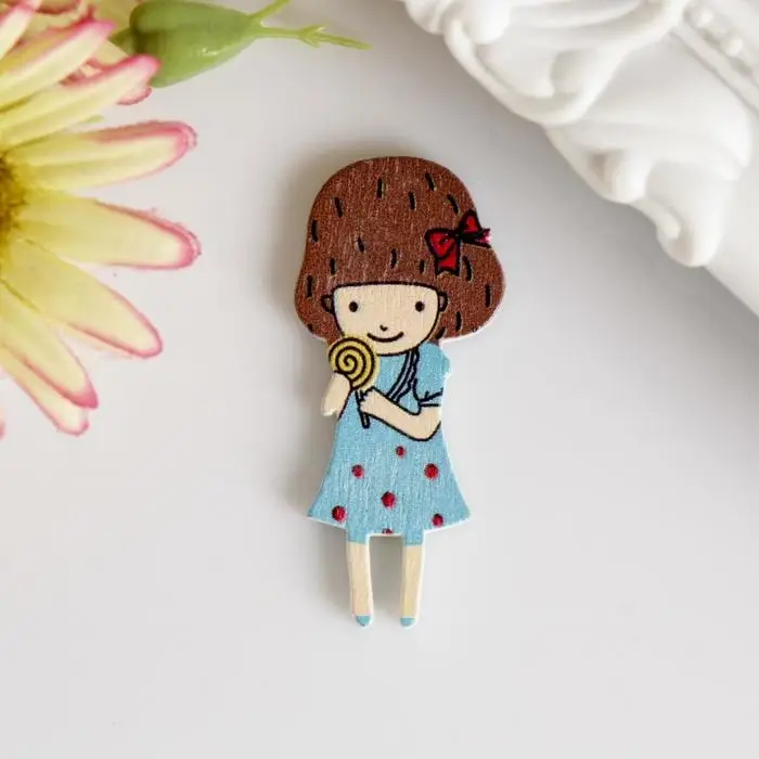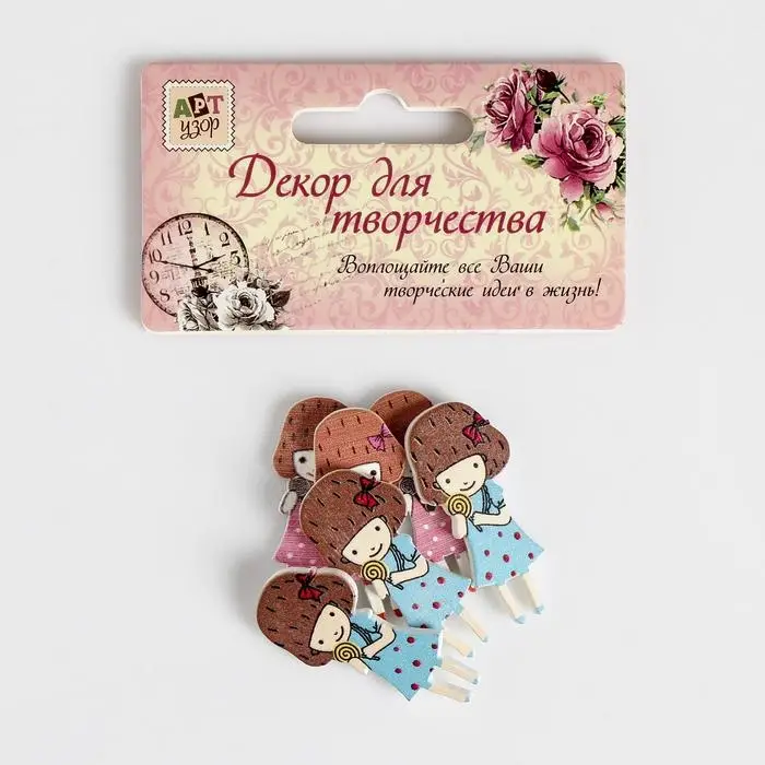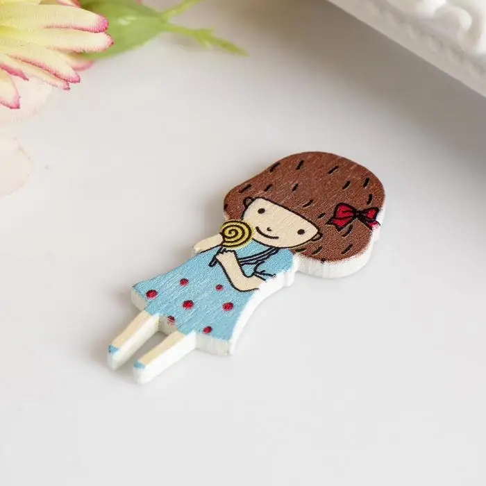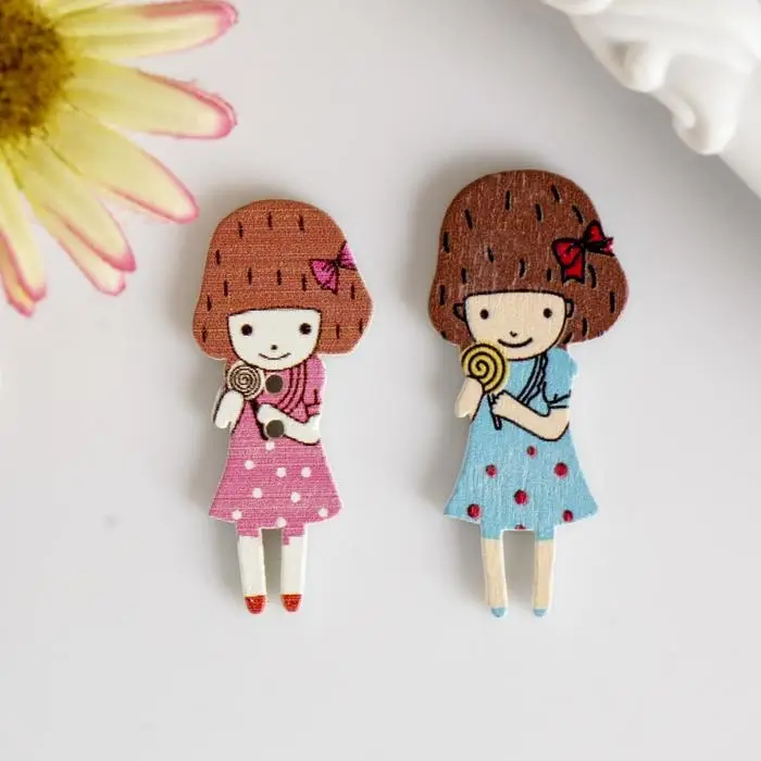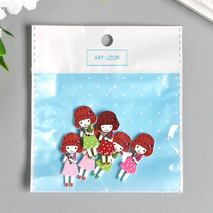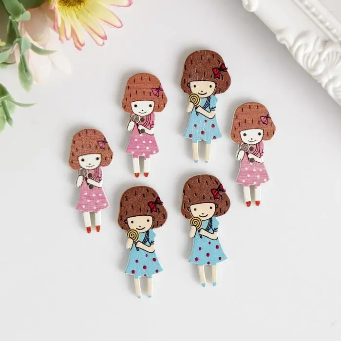 Набор пуговиц декоративных дерево "Девочки" (набор 6 шт) МИКС 3,8х1,7 см