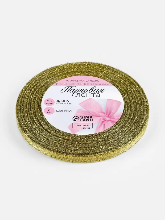 Лента парчовая, 6 мм, 23±1 м, цвет золотой