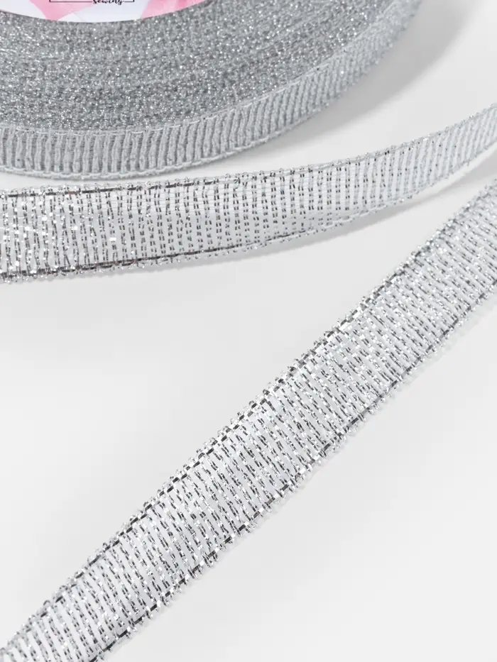 Лента парчовая, 10 мм, 23±1 м, цвет серебряный