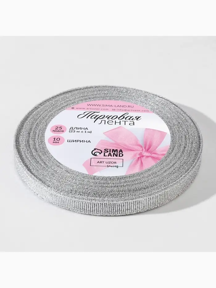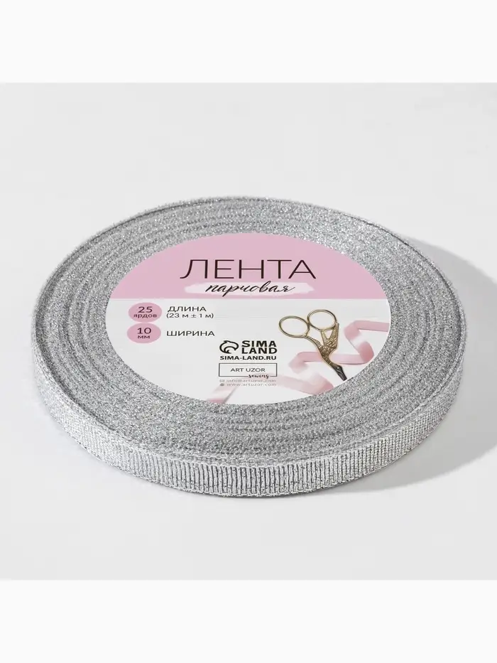 Серебристая парчовая лента шириной 10 мм и длиной около 23 метров от бренда «Арт Узор» станет практичным и стильным решением для праздничного оформления и рукоделия. Её мягкий блеск и плотная текстура подходят для создания выразительных деталей в декоре и подарочной упаковке.
