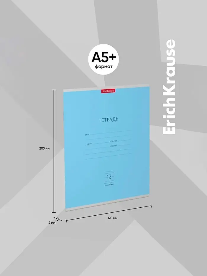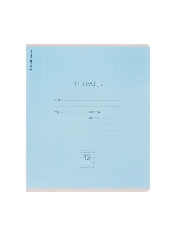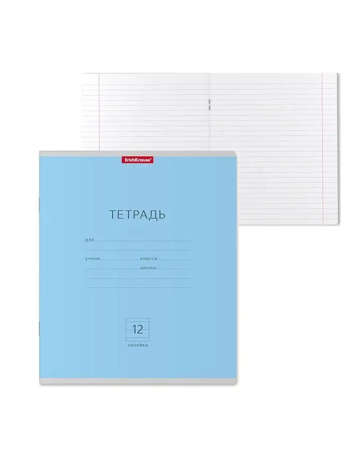 Тетрадь 12 листов в линейку ErichKrause «Классика», обложка мелованный картон, блок офсет, белизна 100%, голубая