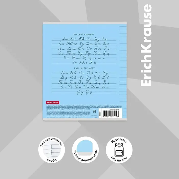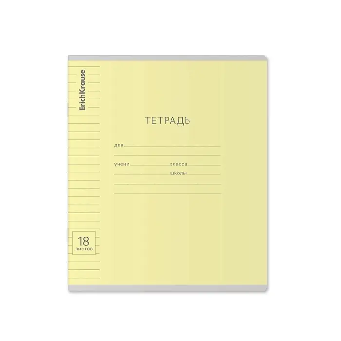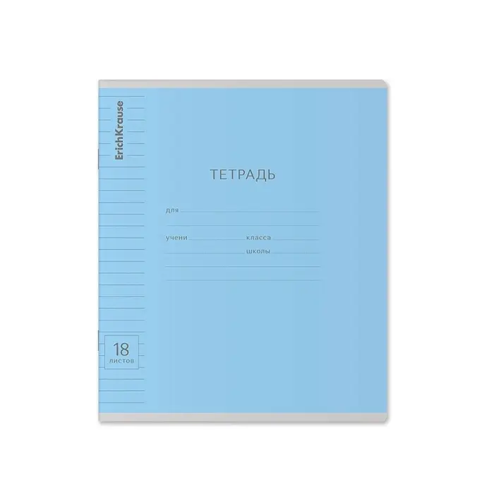 Тетрадь школьная ученическая формата А5+ (170х203 мм). Обложка из высококачественного мелованного картона плотностью 180 г/м2. В блоке 18 листов в линейку с полями. Бумага офсетная плотностью 60 г/м2. Цвет линовки - синий. Скругленные уголки обложки и блока. Тип скрепления - скоба. Тетради одного цвета упакованы в термоусадочную пленку по 10 штук – по 1 цвету. Товар поставляется в нескольких вариантах цвета без возможности выбора.