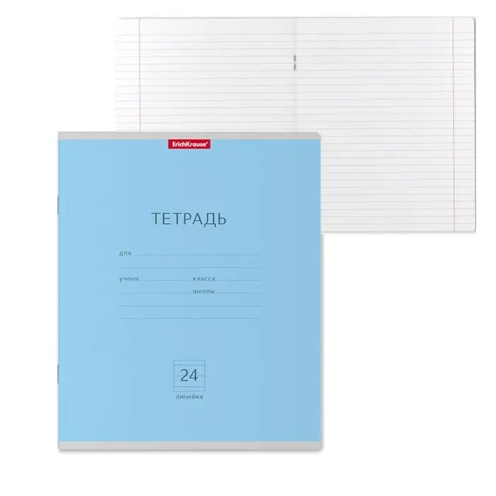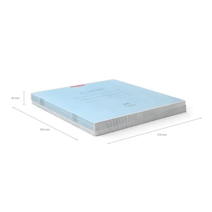 Тетрадь школьная ученическая формата А5+ (170 х 203 мм). Обложка из высококачественного мелованного картона плотностью 180 г/м2. В блоке 24 листа в линейку с полями. Бумага офсетная плотностью 60 г/м2. Цвет линовки - синий. Скругленные уголки обложки и блока. Тип скрепления - скоба. Тетради упакованы в термоусадочную пленку по 10 штук.