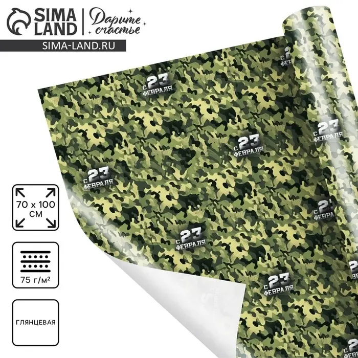 Бумага упаковочная глянец «Камуфляж», 23 февраля, 100×70 см