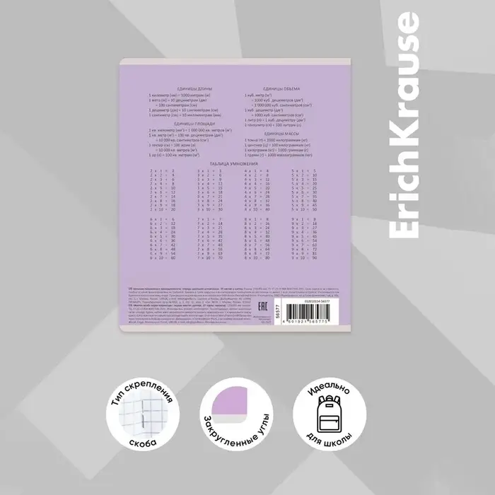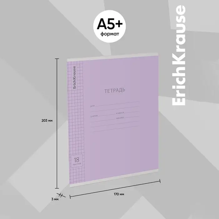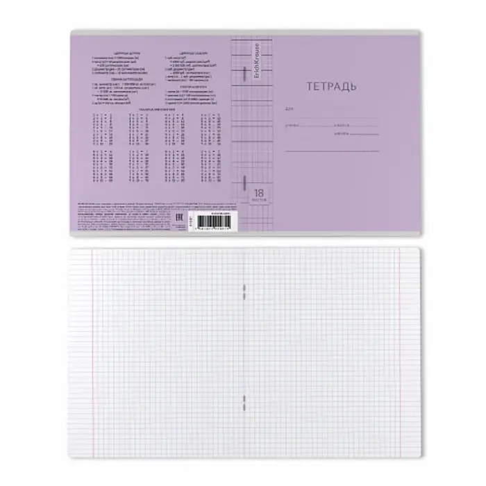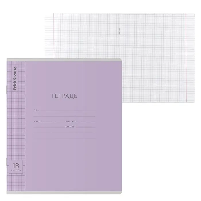 Тетрадь 18 листов в клетку, ErichKrause «Классика», обложка мелованный картон, блок офсет 100% белизна, фиолетовая