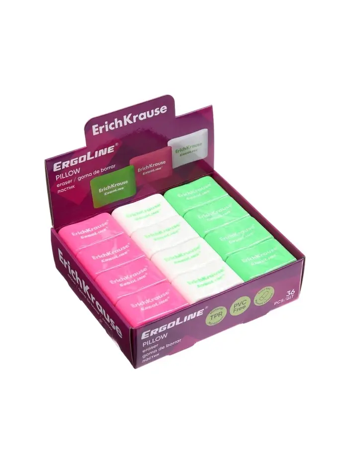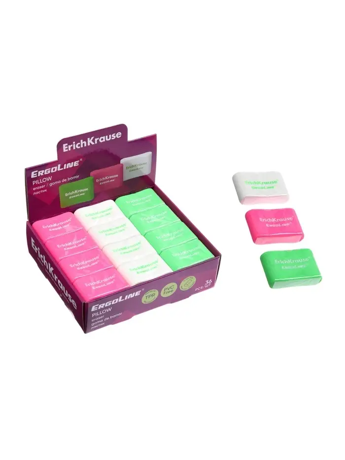 Ластик ErichKrause ErgoLine Pillow, 33×21×8 мм, мягкий, гипоаллергенный, микс