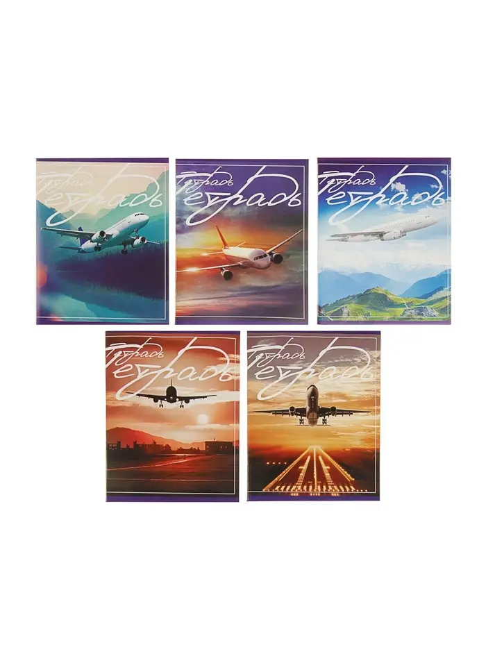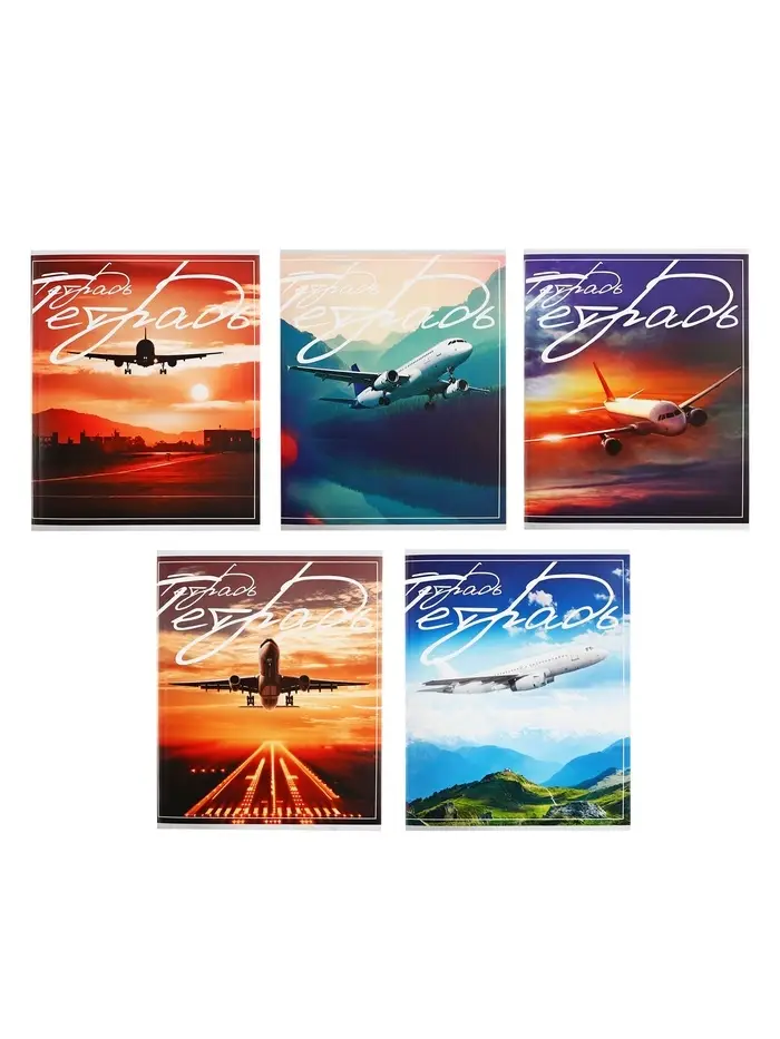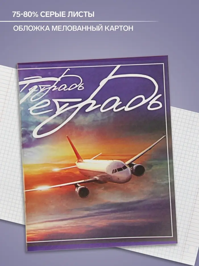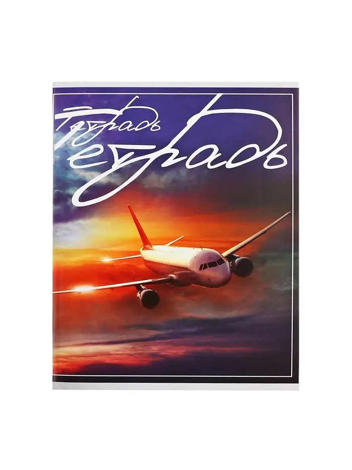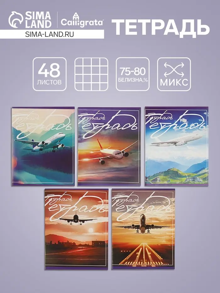 Тетрадь 48 листов в клетку Calligrata «Самолеты», обложка мелованный картон, блок №2, белизна 75% (серые листы), МИКС
