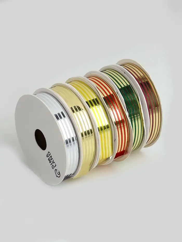 - Длина 5 метров каждой: Компактный формат удобен для домашнего использования. Общая длина лент в наборе составляет 30 метров, что позволяет задекорировать множество подарков.