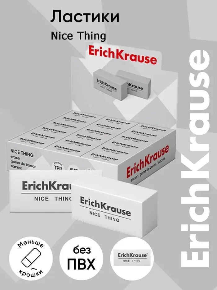 Ластик Erich Krause, Nice Thing, 40×19×15 мм, средней жёсткости, гипоаллергенный
