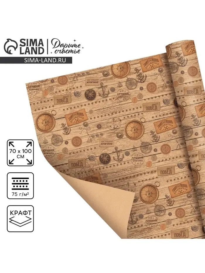 Бумага упаковочная крафт «Настоящему мужчине», 70×100 см