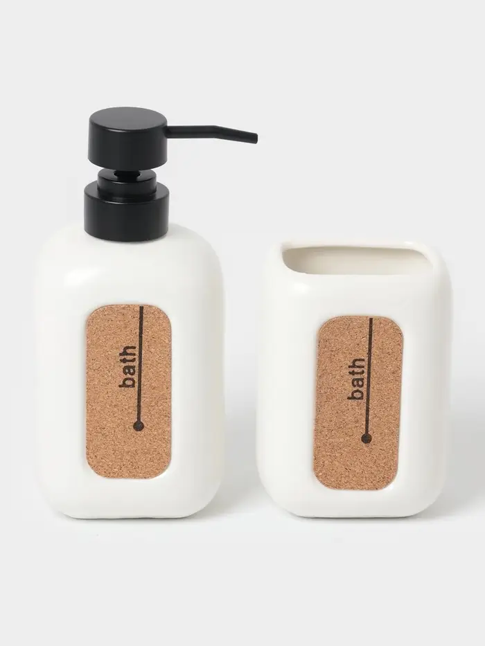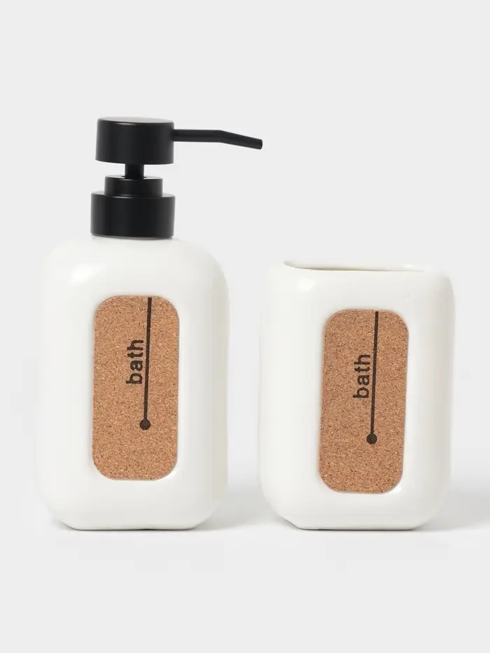 Набор аксессуаров организует пространство и станет стильным украшением Вашей ванной комнаты. За счет сдержанного дизайна данный керамический набор в ванную подойдет к любому дизайну ванной комнаты. Набор состоит из 2 предметов: дозатор, стакан.