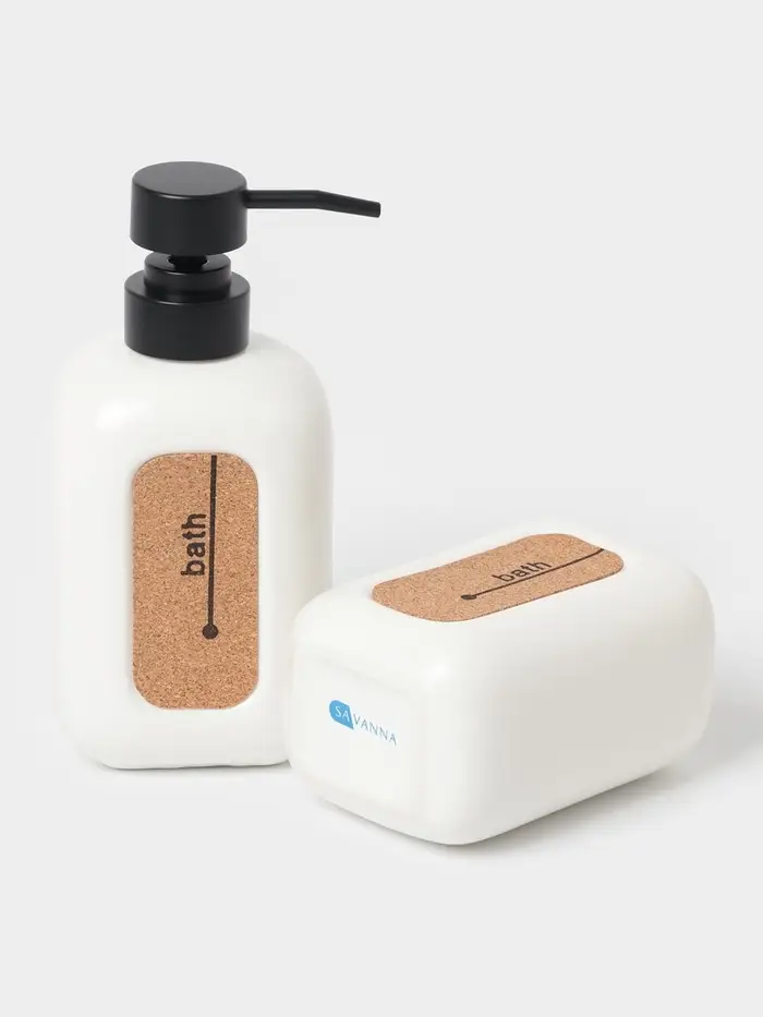 Аксессуары для ванной SAVANNA Monro, 4 предмета, мыльница, дозатор для мыла 450 мл, стакан, баночка, белые