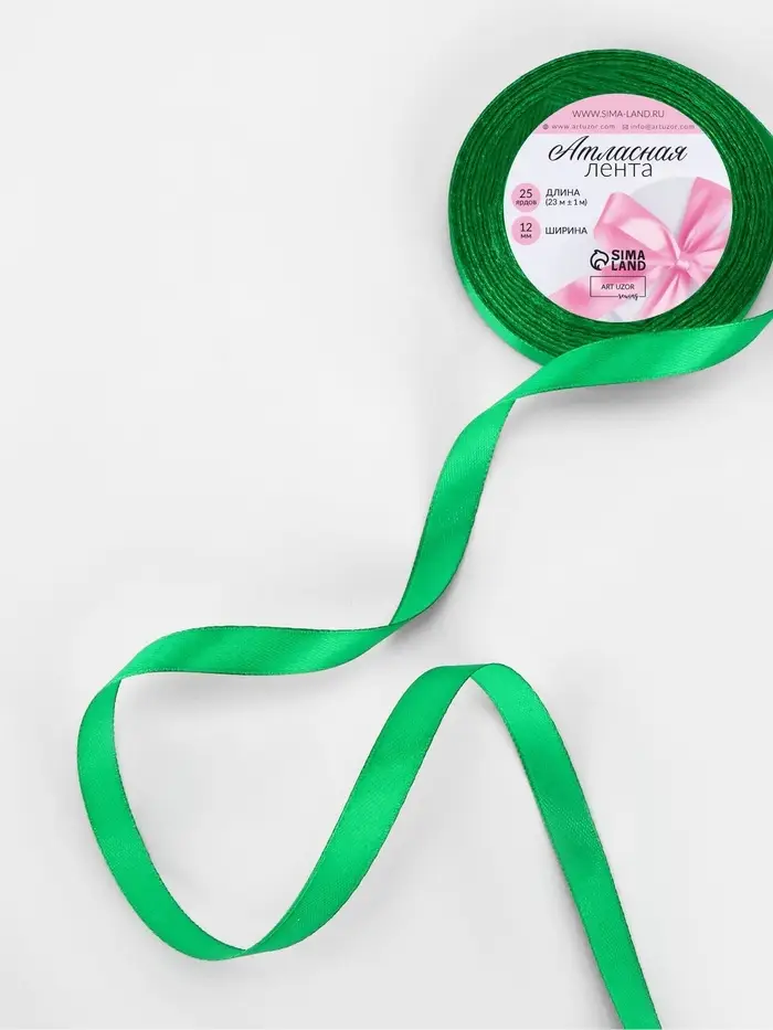 Атласная лента создаёт великолепные акценты в свадебных украшениях и сезонных декорах. Ее насыщенная зелёная палитра прекрасно сочетается с природными элементами, добавляя яркие нотки в флористические композиции. Перевоплотите свои идеи по декорированию с помощью этой практичной и стильной ленты!