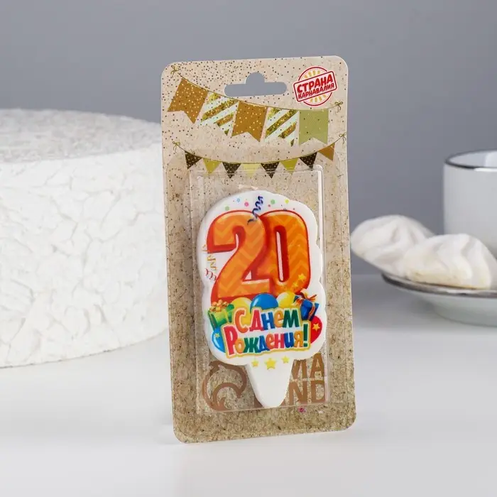 Свеча для торта цифра «С Днём Рождения» 20 оранжевая, 6.5 см