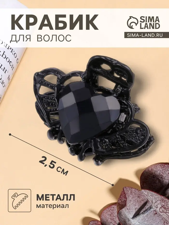 Крабик для волос «Чёрный ажур», ореол сердца, 2.5 см