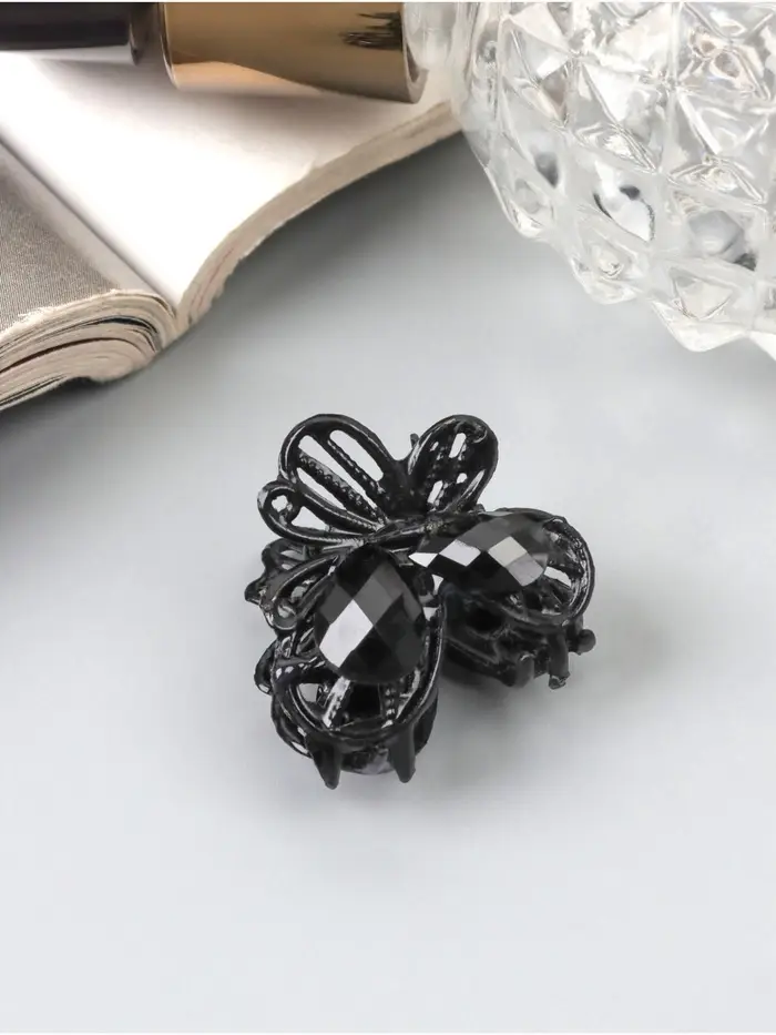 Крабик для волос «Чёрный ажур», бабочка, 2.3 см