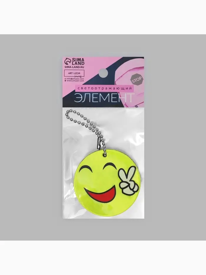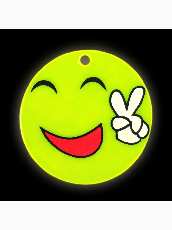 Круглый светоотражатель с символом мира — это одновременно аксессуар безопасности и позитивный знак. Желтый смайл диаметром 5.3 см с узнаваемым символом делает вас заметнее в темноте, неся доброе послание.