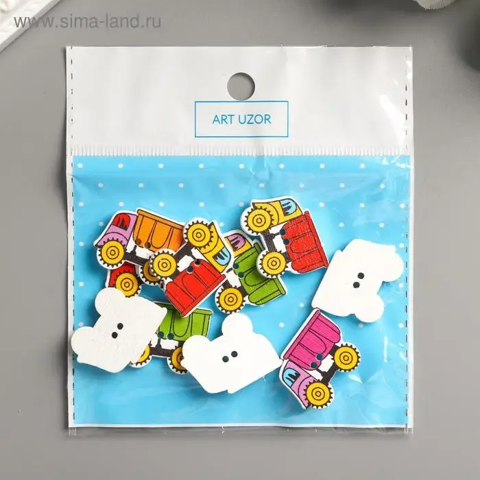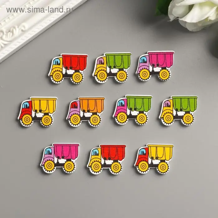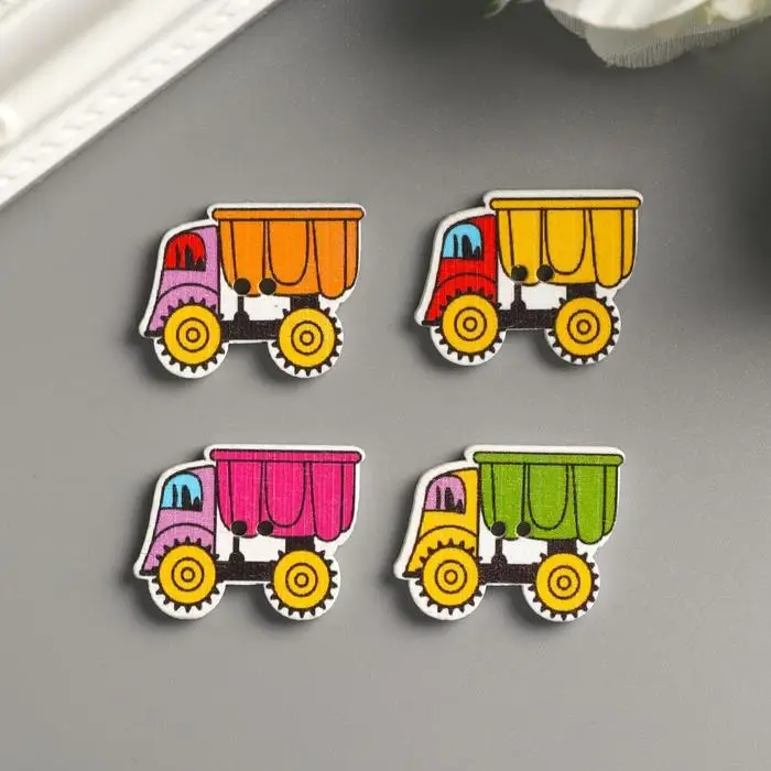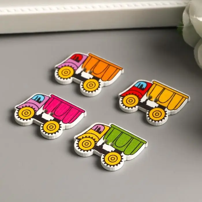 Набор пуговиц декоративных дерево "Грузовички" набор 10 шт МИКС 2х2,5 см