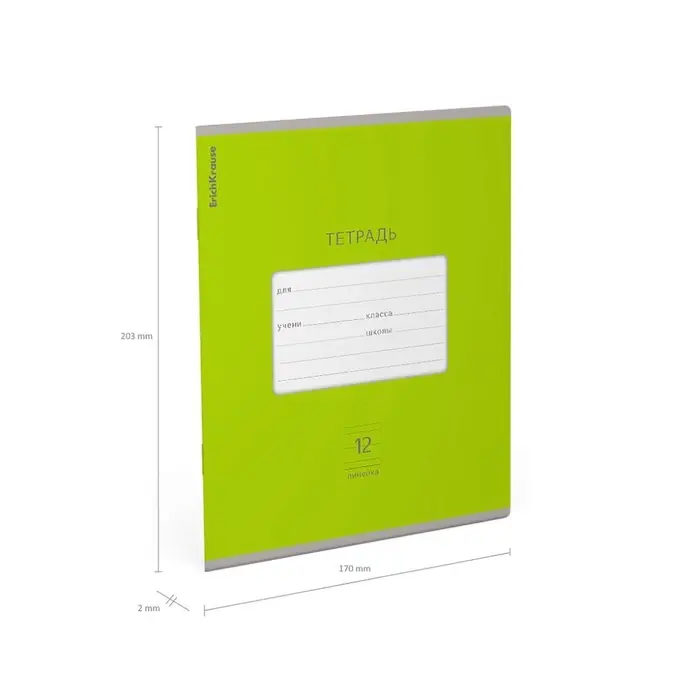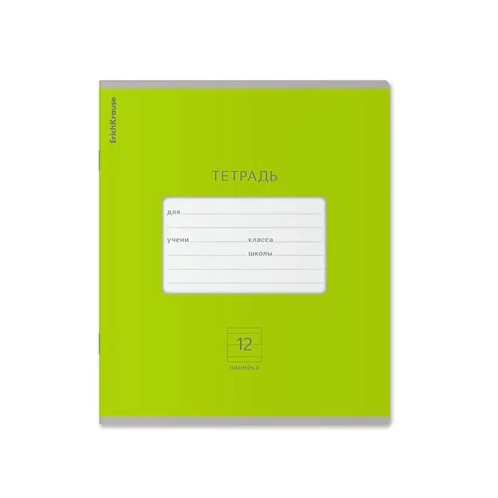 Тетрадь 12 листов в линейку ErichKrause «Классика Bright», обложка мелованный картон, блок офсет, белизна 100%, зелёная