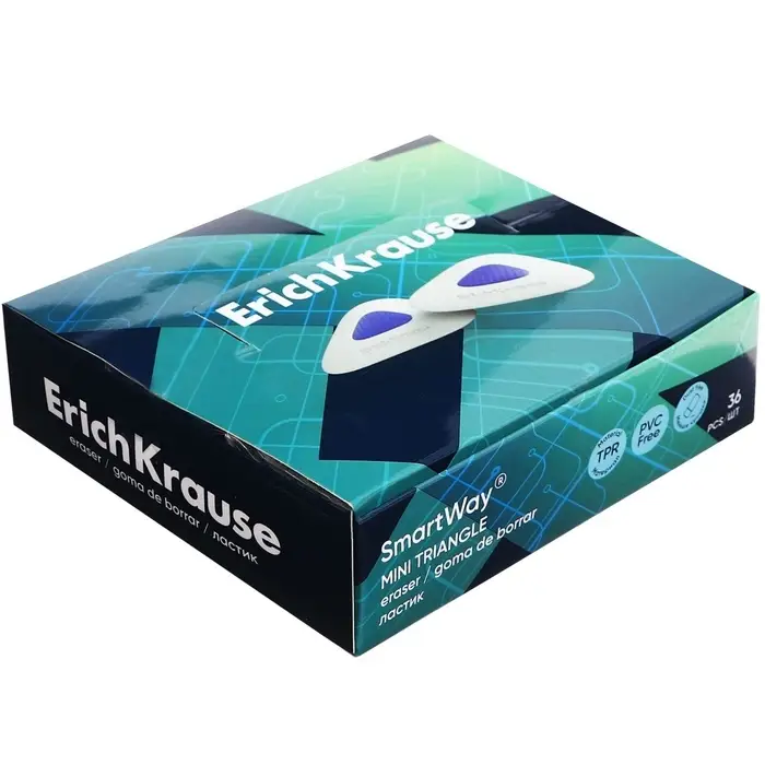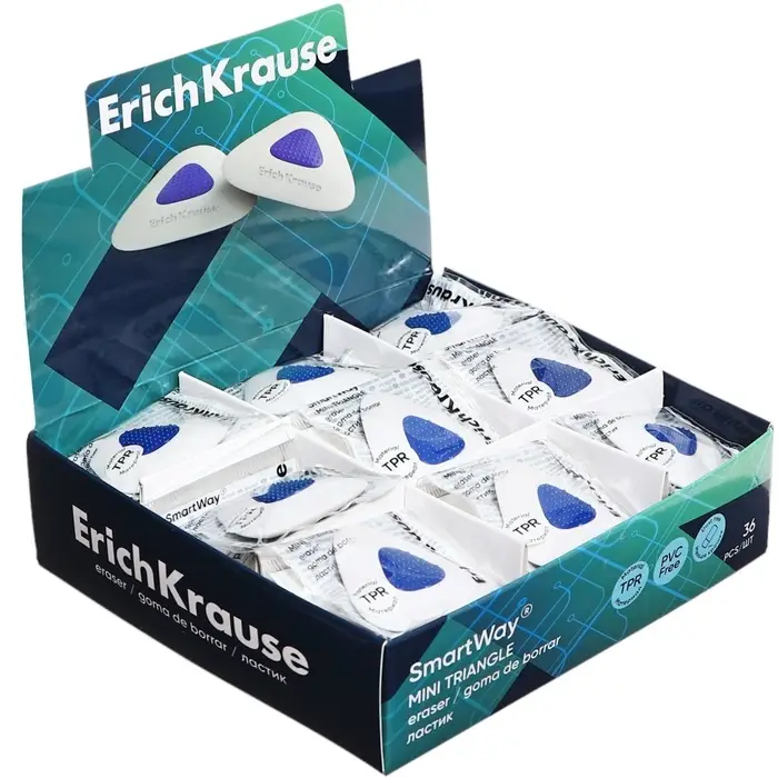 Ластик с держателем ErichKrause SmartWay Triangle, треугольный, средней жёсткости, гипоаллергенный, в пакете с европодвесом