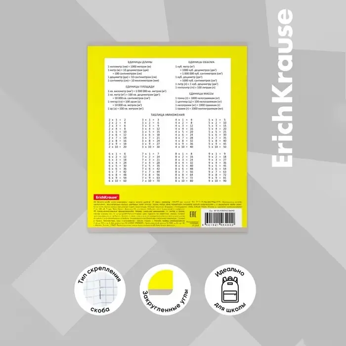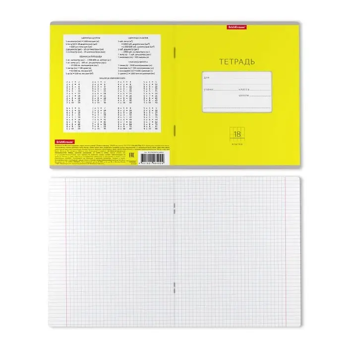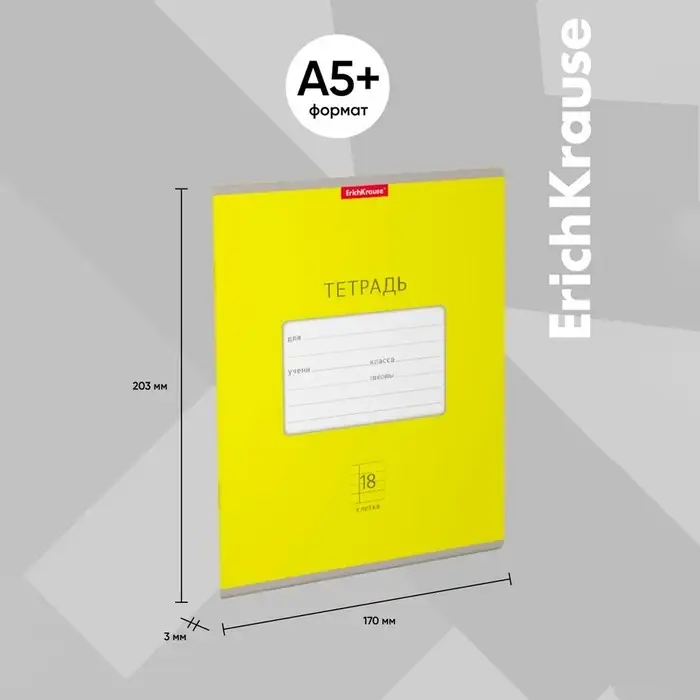 Тетрадь школьная ученическая формата А5+ (170 х 203 мм). Обложка из высококачественного мелованного картона плотностью 180 г/м2. В блоке 18 листов в клетку с полями. Бумага офсетная плотностью 60 г/м2. Цвет линовки - синий. Скругленные уголки обложки и блока. Тип скрепления - скоба. Тетради упакованы в термоусадочную пленку по 10 штук.