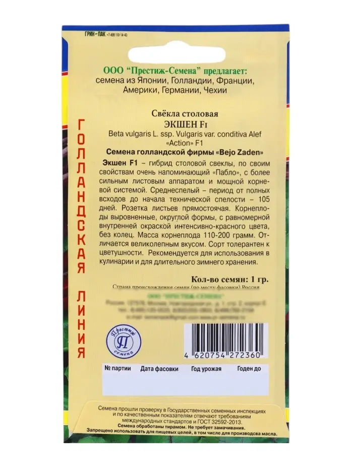Семена Свекла столовая «Экшен» F1, 1 г, «Престиж семена»