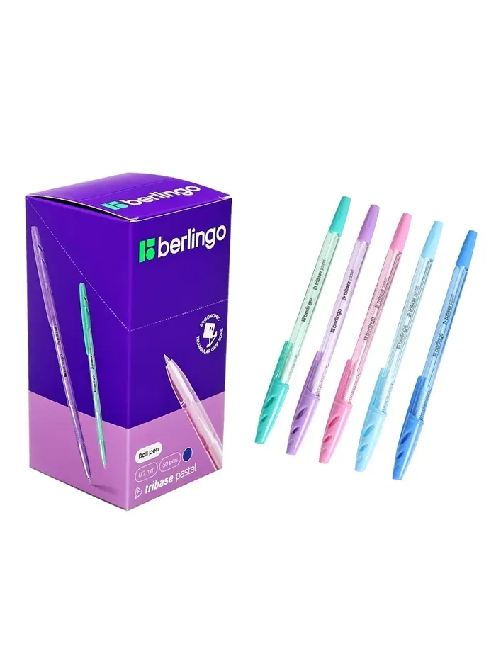 Ручка шариковая Berlingo. Tribase Pastel, синий стержень, узел 0.7 мм, МИКС