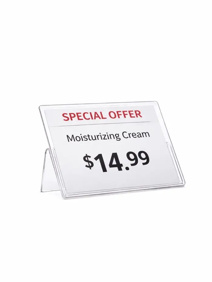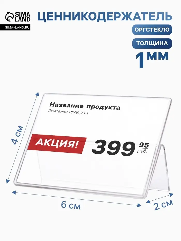 Упростите ведение учета товаров и добавьте элегантности витринам с помощью подставки для ценников из прозрачного оргстекла. Компактные размеры (6×4 см) и минимальное присутствие постороннего материала делают этот держатель практически незаметным, фокусируя внимание клиента непосредственно на цене товара. Специально разработанное основание обеспечивает надежность фиксации бумаги или карточки с информацией, а особая прозрачность и гладкость поверхности не отвлекают от восприятия основной информации.