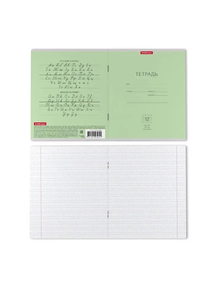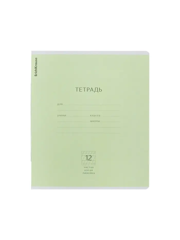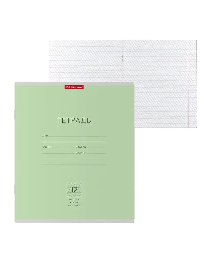 Тетрадь 12 листов в частую косую линейку, ErichKrause «Классика», обложка мелованный картон, зелёная