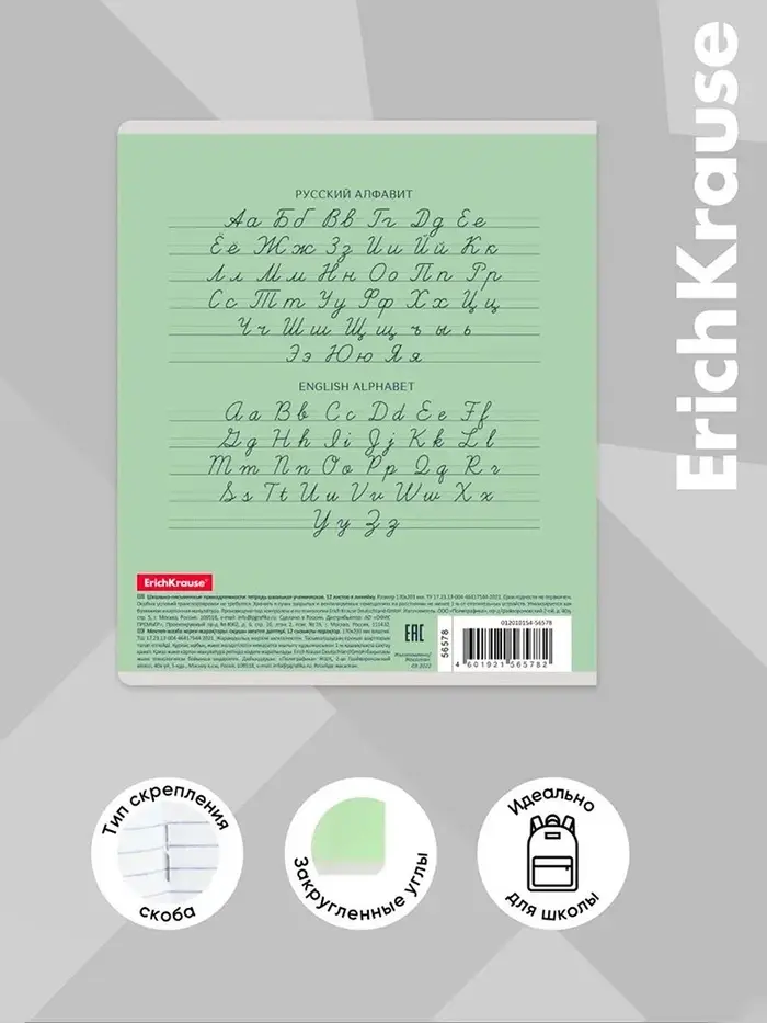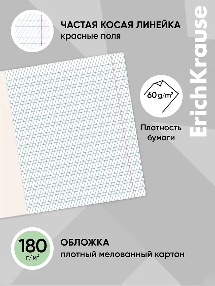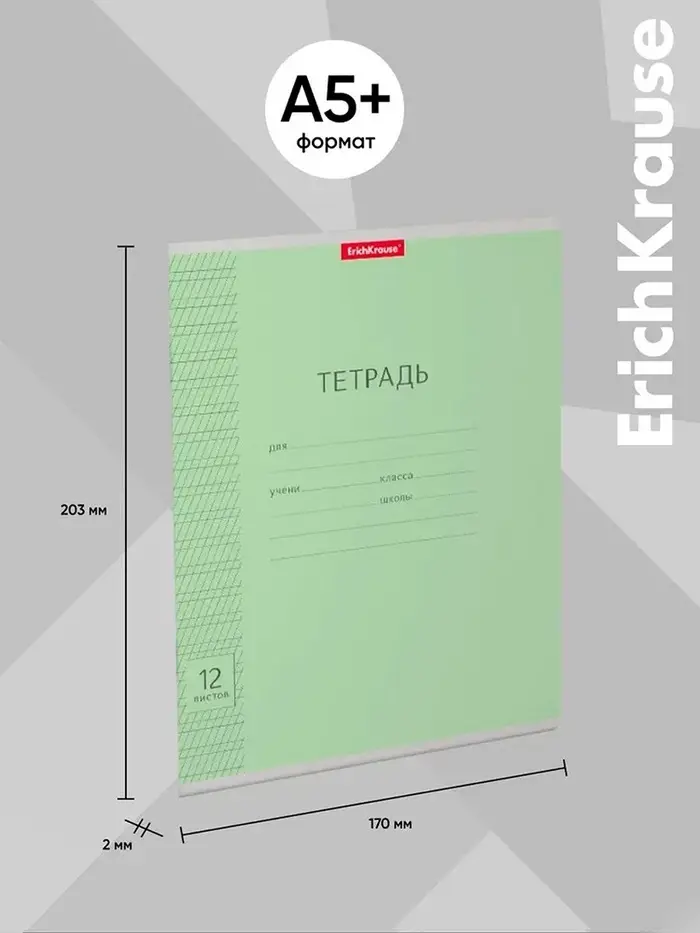 Тетрадь школьная ученическая формата А5+ (170 х 203 мм). Обложка из высококачественного мелованного картона плотностью 180 г/м2. В блоке 12 листов в частую косую линейку с полями. Бумага офсетная плотностью 60 г/м2. Цвет линовки - синий. Скругленные уголки обложки и блока. Тип скрепления - скоба. Тетради упакованы в термоусадочную пленку по 10 штук.