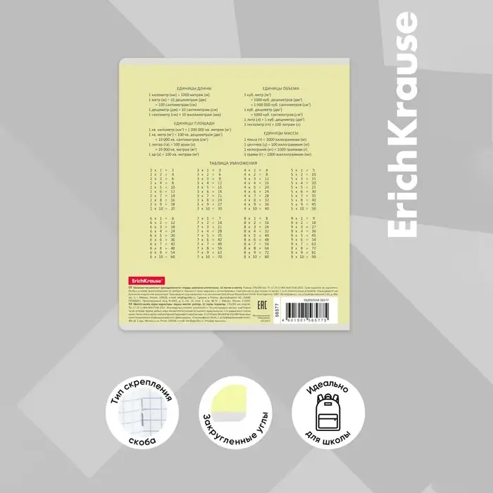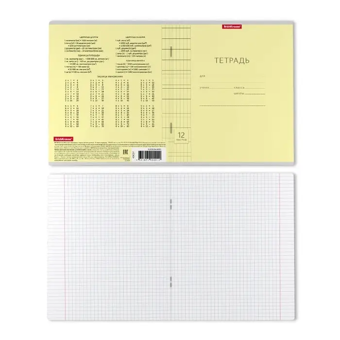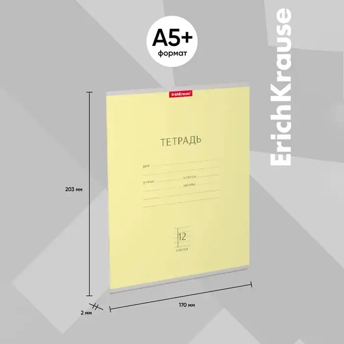 Тетрадь школьная ученическая формата А5+ (170 х 203 мм). Обложка из высококачественного мелованного картона плотностью 180 г/м2. В блоке 12 листов в клетку с полями. Бумага офсетная плотностью 60 г/м2. Цвет линовки - синий. Скругленные уголки обложки и блока. Тип скрепления - скоба. Тетради упакованы в термоусадочную пленку по 10 штук.