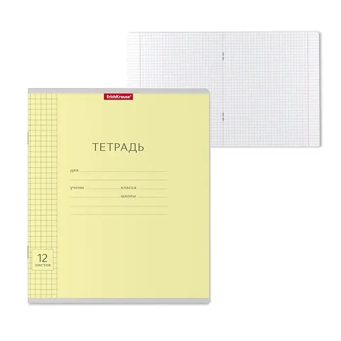 Тетрадь 12 листов в клетку ErichKrause «Классика», обложка мелованный картон, жёлтая