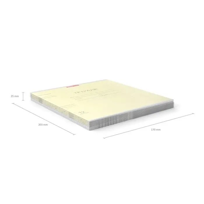Тетрадь школьная ученическая формата А5+ (170 х 203 мм). Обложка из высококачественного мелованного картона плотностью 180 г/м2. В блоке 12 листа в линейку с полями. Бумага офсетная плотностью 60 г/м2. Цвет линовки - синий. Скругленные уголки обложки и блока. Тип скрепления - скоба. Тетради упакованы в термоусадочную пленку по 10 штук.