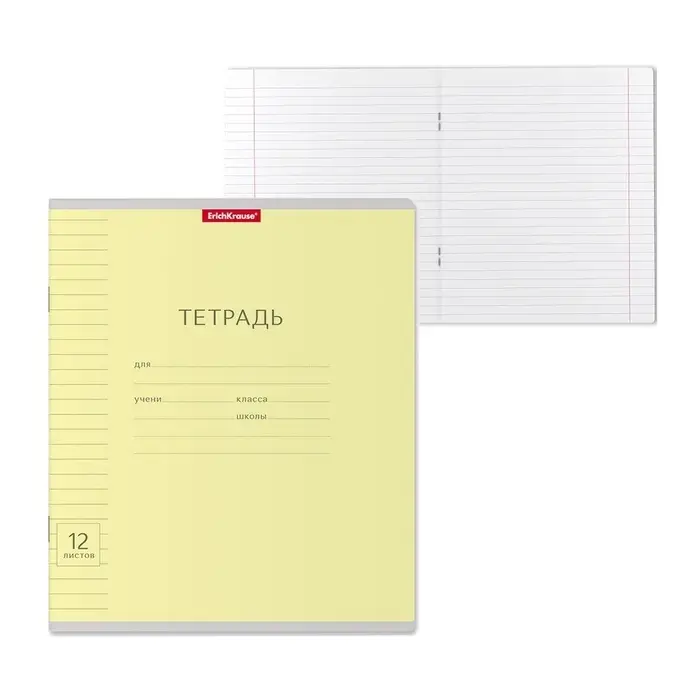 Тетрадь 12 листов в линейку, ErichKrause "Классика", обложка мелованный картон, блок офсет 100% белизна, жёлтая