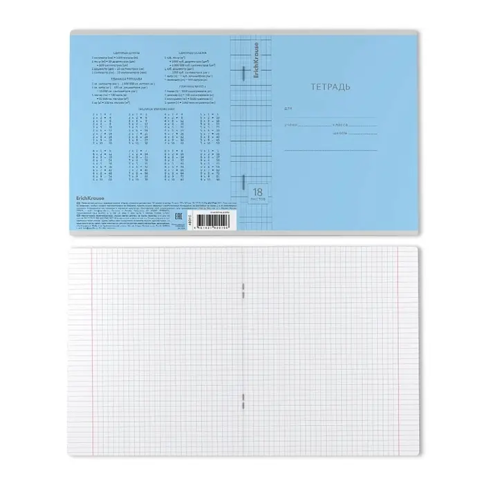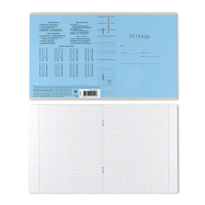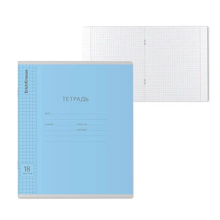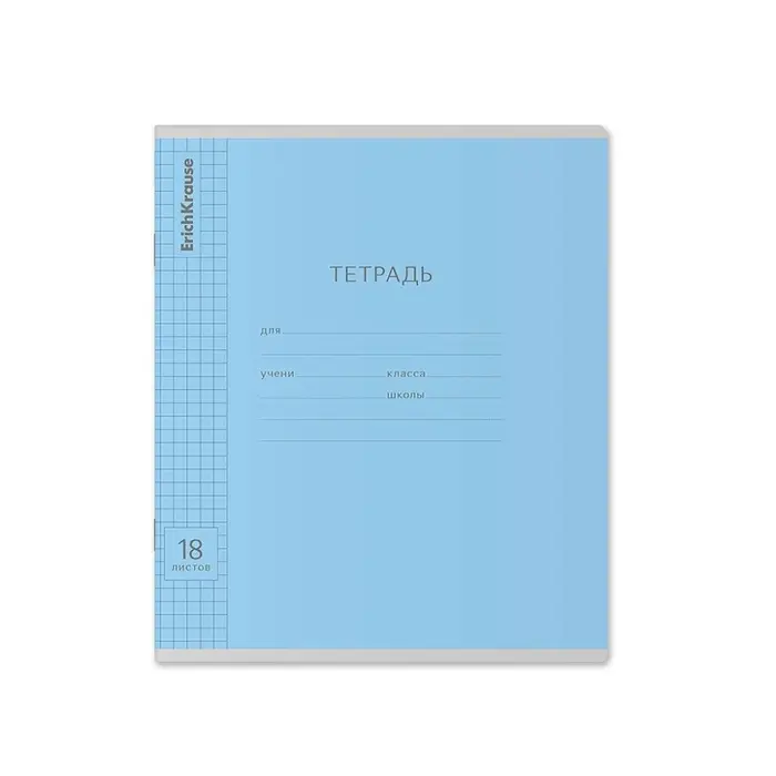 Тетрадь 18 листов в клетку ErichKrause «Классика», обложка мелованный картон, голубая