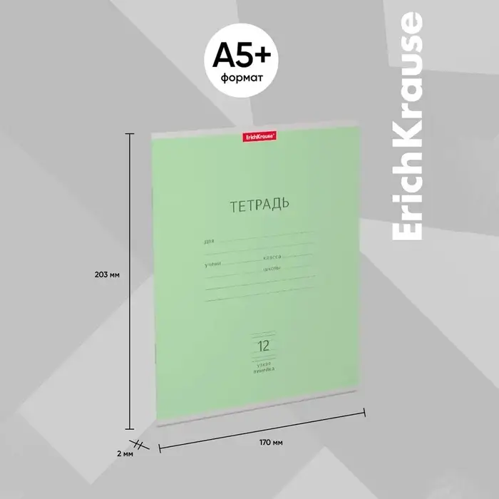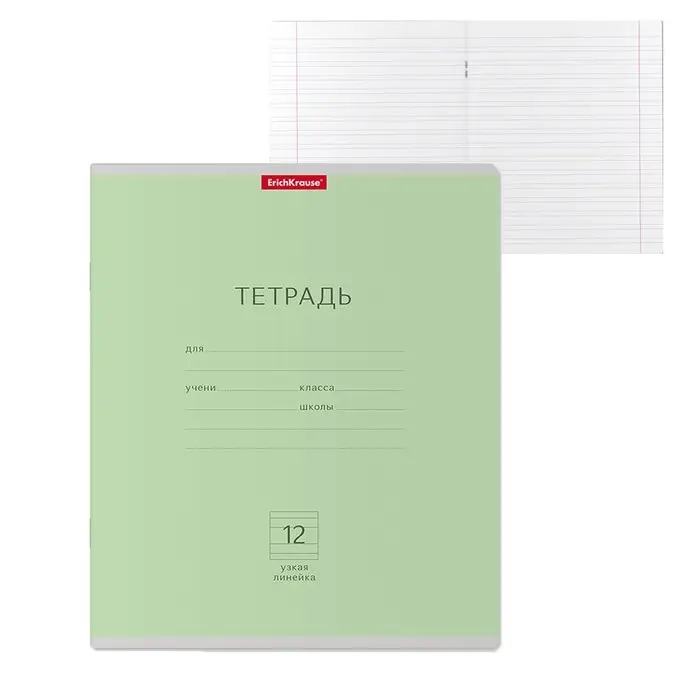 Тетрадь 12 листов в узкую линейку, ErichKrause «Классика», обложка мелованный картон, блок офсет 100% белизна, зелёная