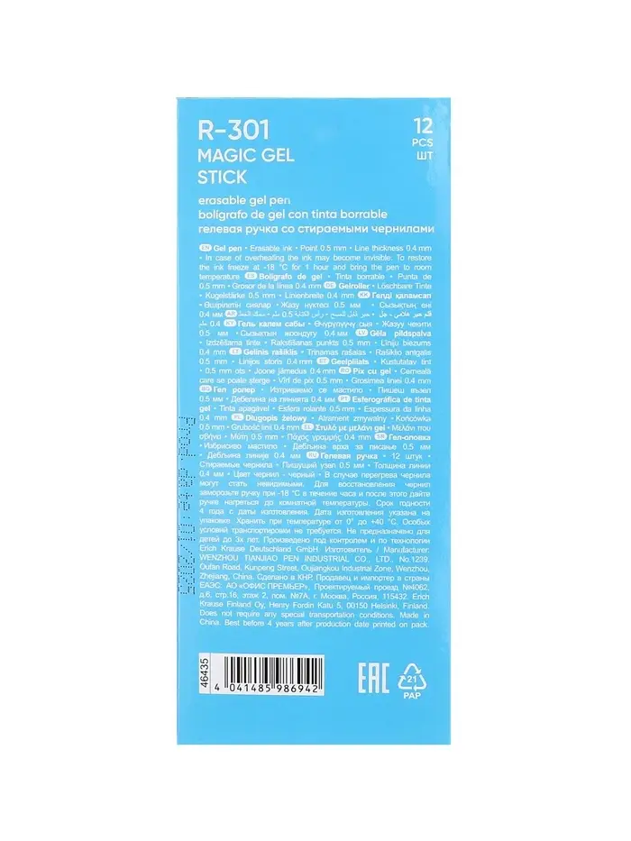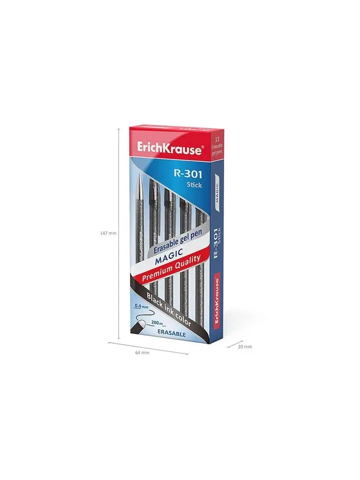 Стираемая ручка ErichKrause R=301 Magic Gel, гелевая, узел 0.5 мм, чёрная
