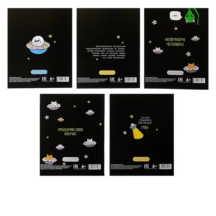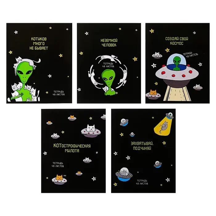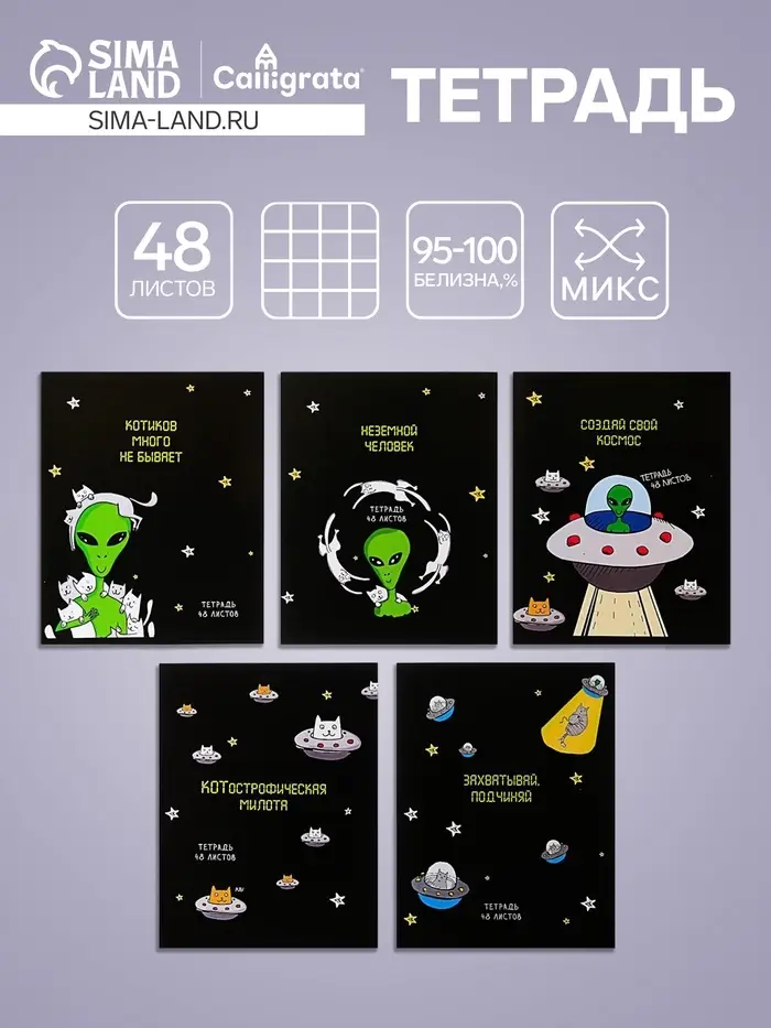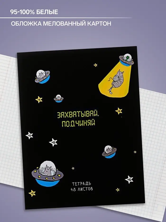 Тетрадь 48 листов в клетку Calligrata «НЛО», обложка мелованный картон, блок офсет, МИКС