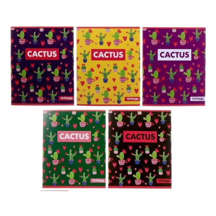 Тетрадь 36 листов в клетку Calligrata «Кактус», обложка мелованный картон, МИКС