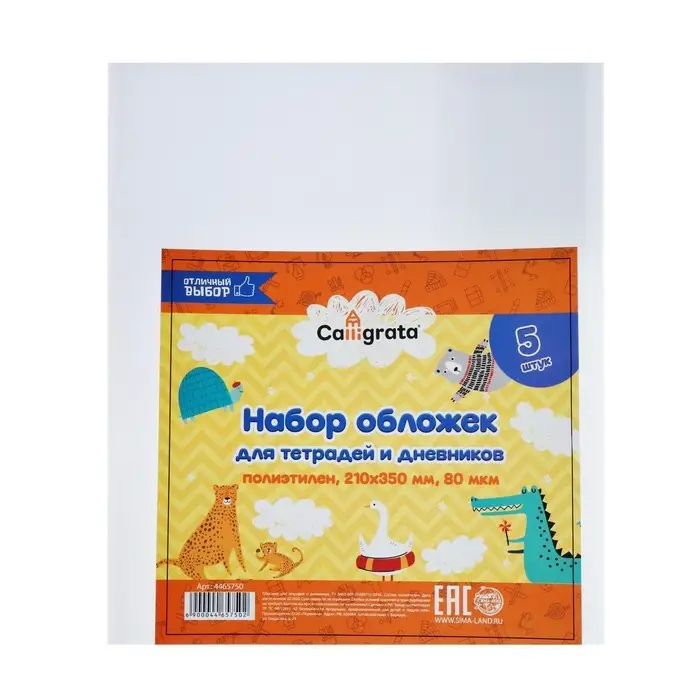Набор обложек ПЭ 5 штук, 210×350 мм, 80 мкм, для тетрадей и дневников (в мягкой обложке)