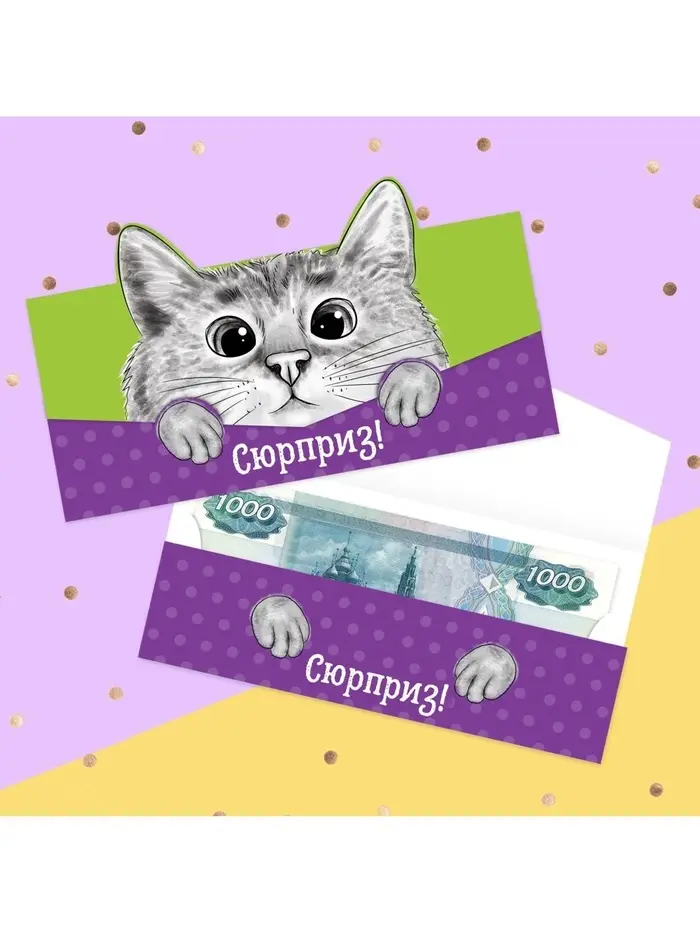 Конверт для денег фигурный «Кот», 17.5×8 см