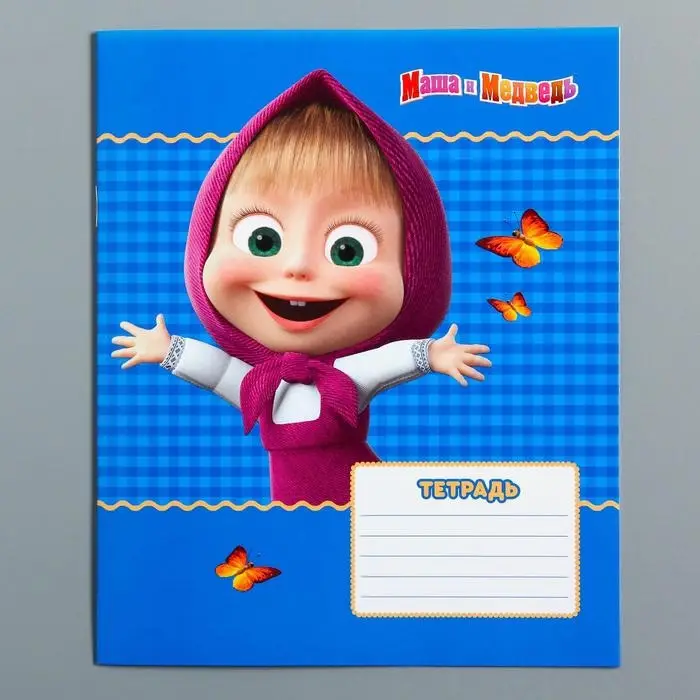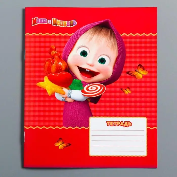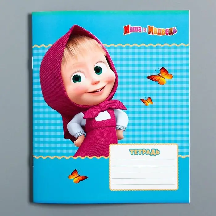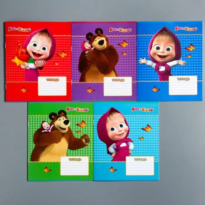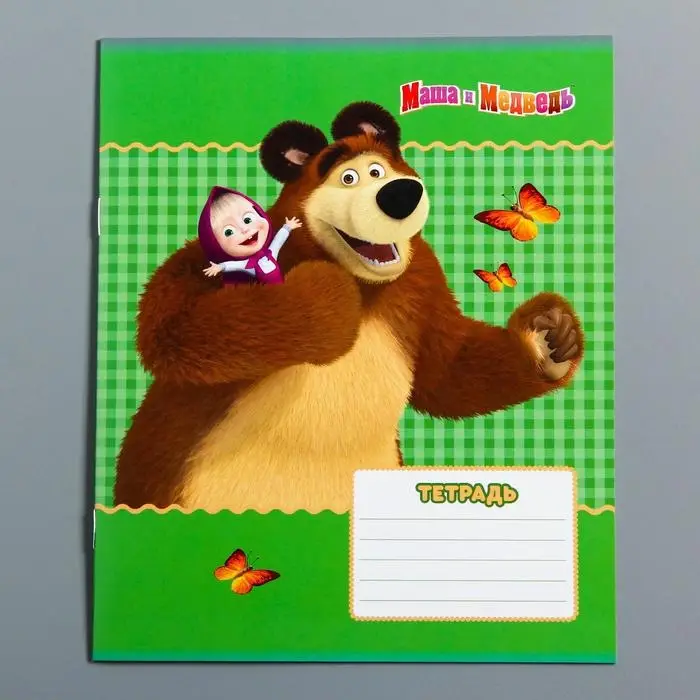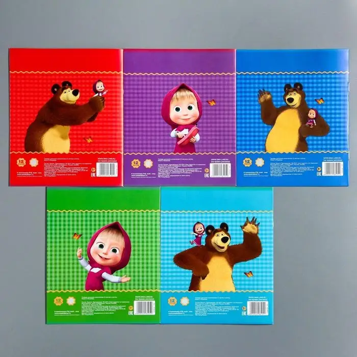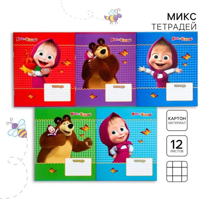 Тетрадь в клетку 12 листов, 5 видов МИКС, обложка мелованный картон, «Маша и медведь»