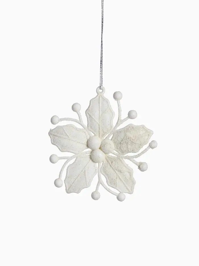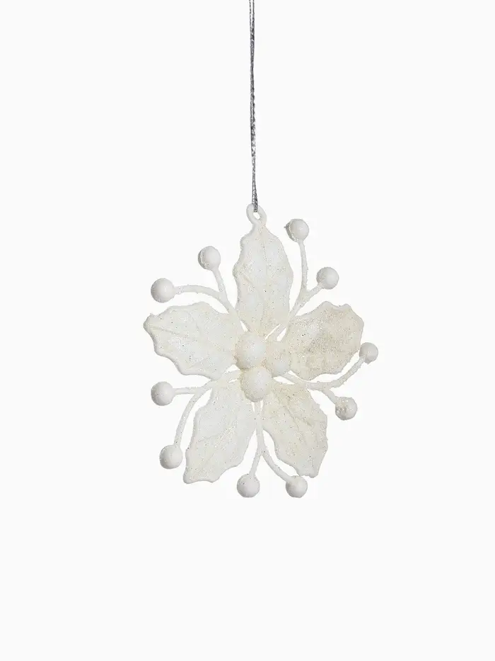Белая пластиковая ёлочная игрушка в форме резного цветка высотой 9 см станет изящным дополнением новогоднего декора. Её дизайн объединяет классические и скандинавские мотивы с элементами ар-деко, создавая лёгкую и стильную атмосферу праздника.